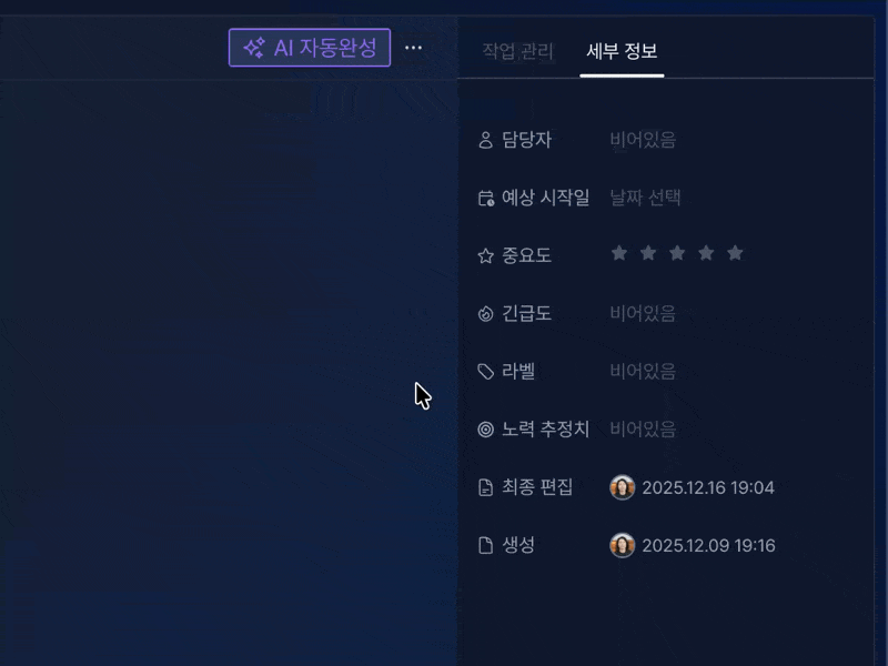 1️⃣ 작업 속성 자동 완성
