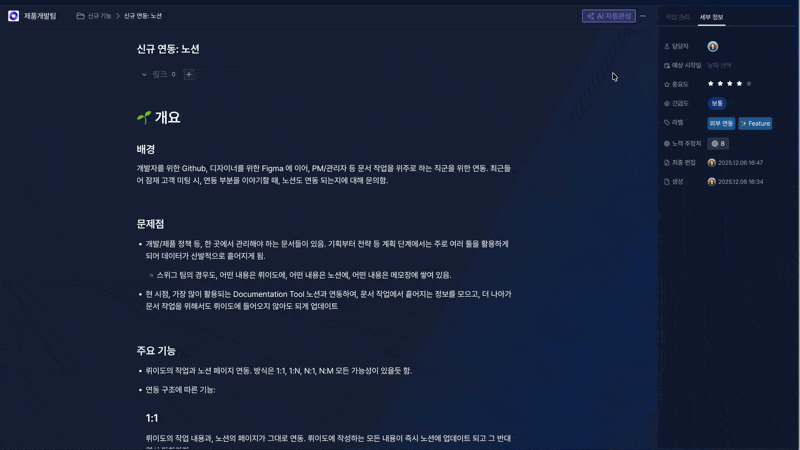 - 프로젝트 일정 자동 생성: 팀의 맥락을 이해하고 속도를 반영해, 일정이 더 정교해졌습니다.
