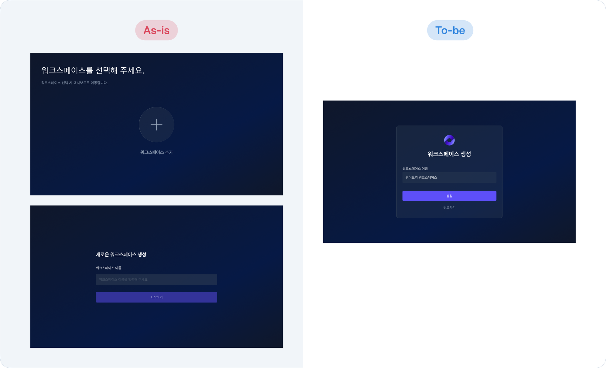 워크스페이스 생성 단계에서도 이탈이 발생하고 있었고, 기존 플로우는 다음과 같았습니다.